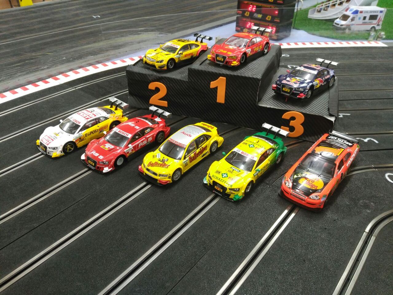 La segunda carrera del campeonato de Madera volvió a tener la lucha entre VKS, SLOT EXPERIENCE y LOCOMOTOR por la primera posición, pero en esta ocasión VKS no dio ninguna concesión y se alzo con la victoria, manteniendo así el liderato en la clasificación. SLOTEXPERIENCE con alguna pequeño problema aprovecho los que si tuvo LOCOMOTOR y volvió a pisar el cajón en el segundo peldaño. LOCOMOTOR de nuevo se tuvo que conformar con el tercer puesto.